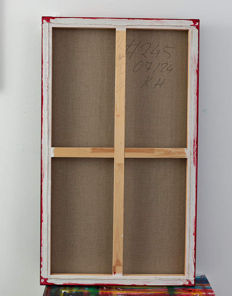 Dieses zeitgenössische, moderne Gemälde wird auf einem Holzkeilrahmen geliefert.