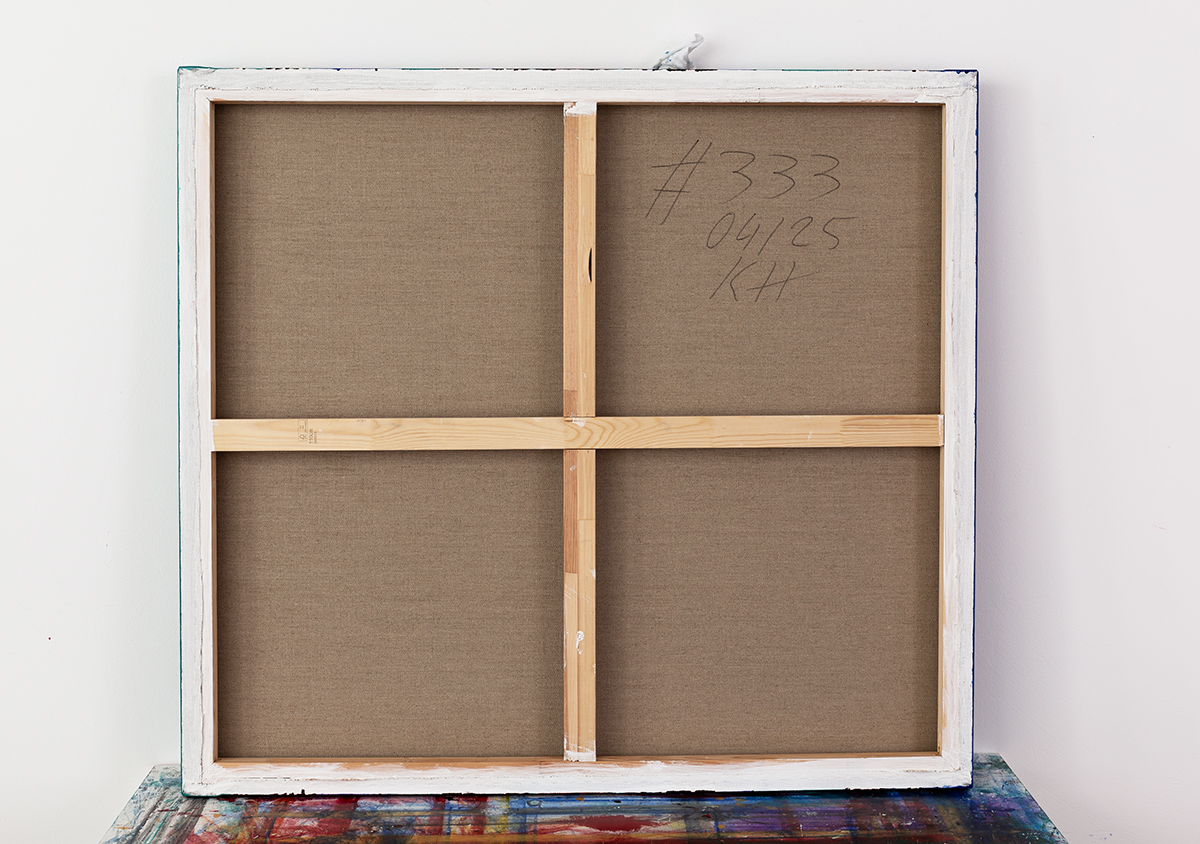Dieses zeitgenössische, moderne Gemälde wird auf einem Holzkeilrahmen geliefert.