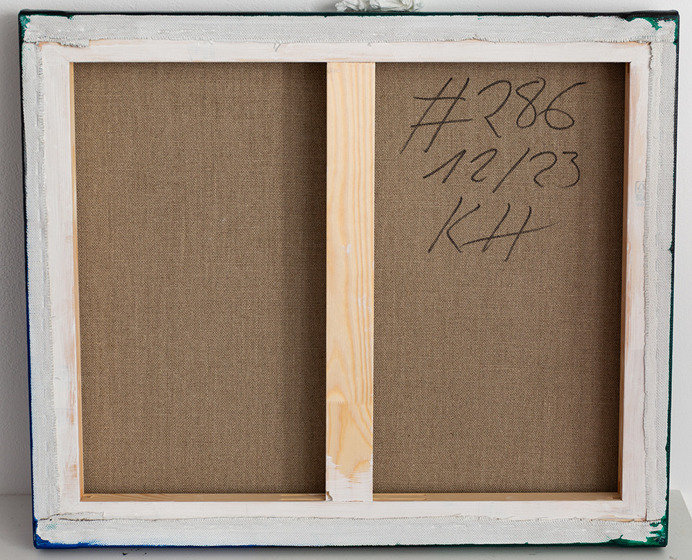 Dieses zeitgenössische, moderne Gemälde wird auf einem Holzkeilrahmen geliefert.