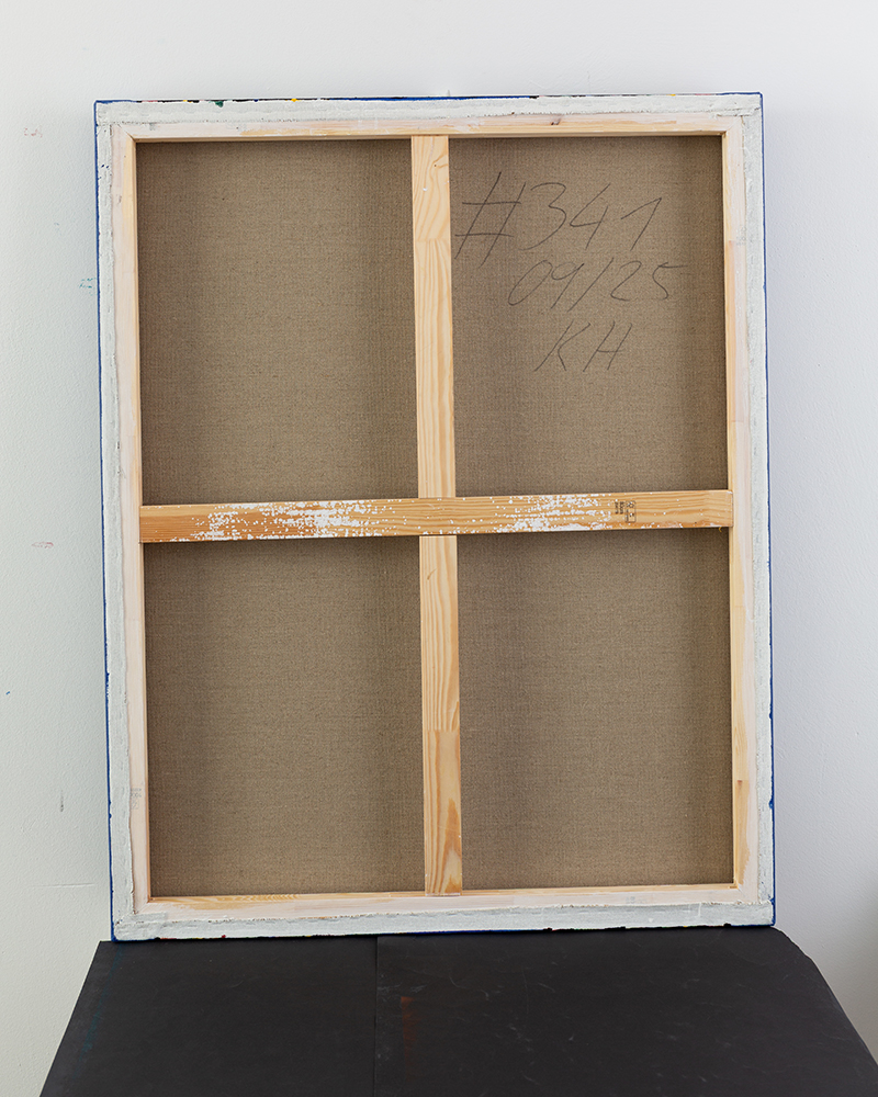 Dieses zeitgenössische, moderne Gemälde wird auf einem Holzkeilrahmen geliefert.